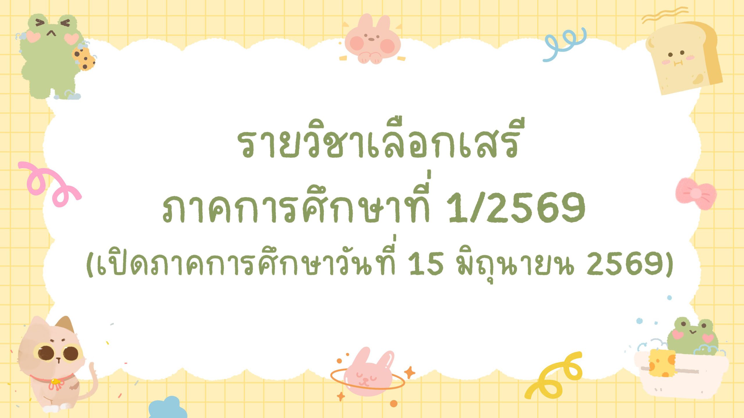 รายวิชาเลือกเสรีภาคการศึกษาที่ 1/2569 (เปิดภาคการศึกษาวันที่ 15 มิถุนายน 2569)Download…